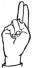 На ћирилици написано ВУКОСЛАВ СРЕТЕНИЈЕВИЋ састоји се из 20 слова [?]. Исписано ћириличном једноручном азбуком за глувонеме: